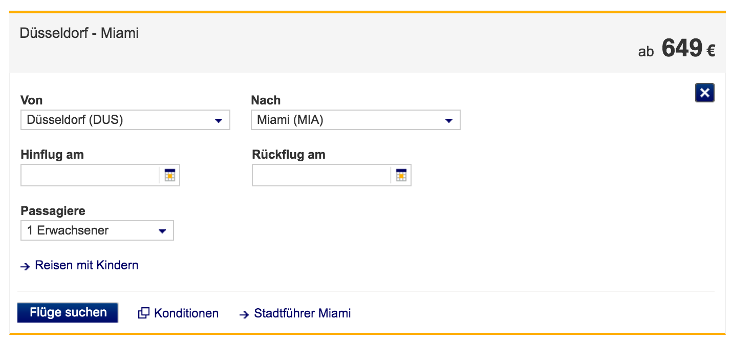Die spannende Reise beginnt am Düsseldorfer Bahnhof, von wo man nun mit der Deutschen Bahn bis nach Frankfurt fährt. Vom Frankfurter Flughafen geht nun ein Flug direkt nach Miami und das ganz komfortabel ohne jeglichen Zwischenstopp. Geflogen wird natürlich mit der Lufthansa selbst. Der günstige Reisepreis beinhaltet zusätzlich schon die Kosten für das Handgepäck und 23 Kilogramm Aufgabegepäck, sodass keinerlei weitere Zusatzkosten auf die Reisenden zu kommen.