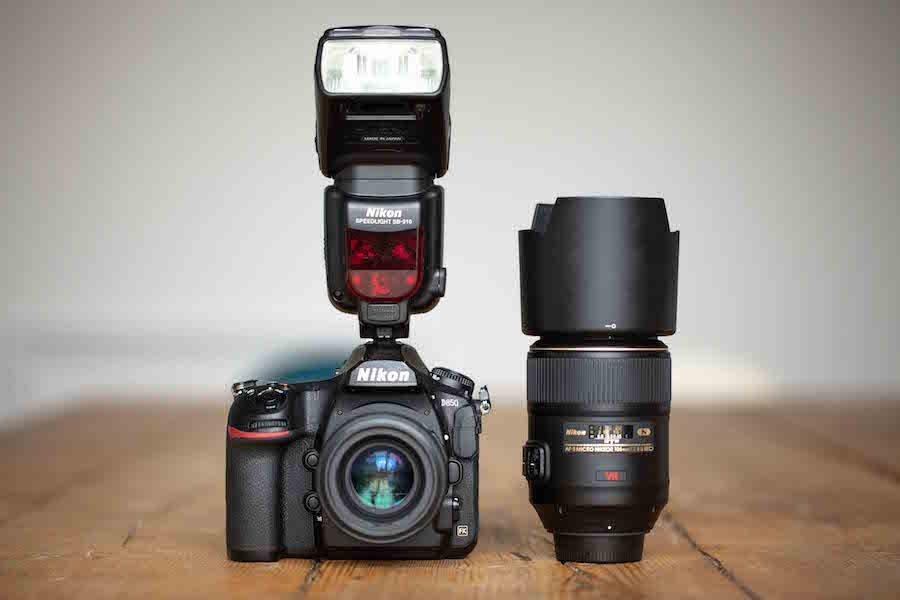 Nikon D850 and Nikon Speedlight SB-910 flash, with Nikon 50mm f/1.4G AF-S Nikkor and Nikon AF-S 105mm f/2.8G IF-ED VR Micro lenses. Bildquelle: www.mpb.com