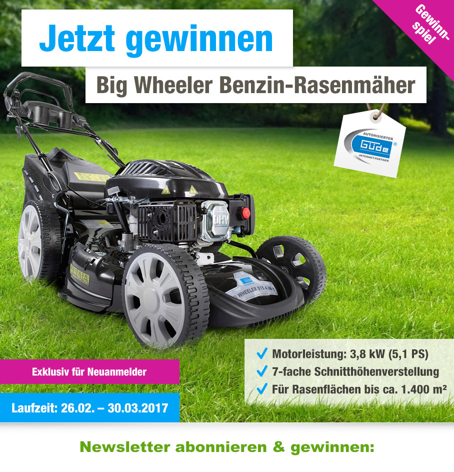 Jetzt beim GartenXXL Gewinnspiel mitmachen und einen Big Wheeler Benzin Rasenmäher gewinnen!