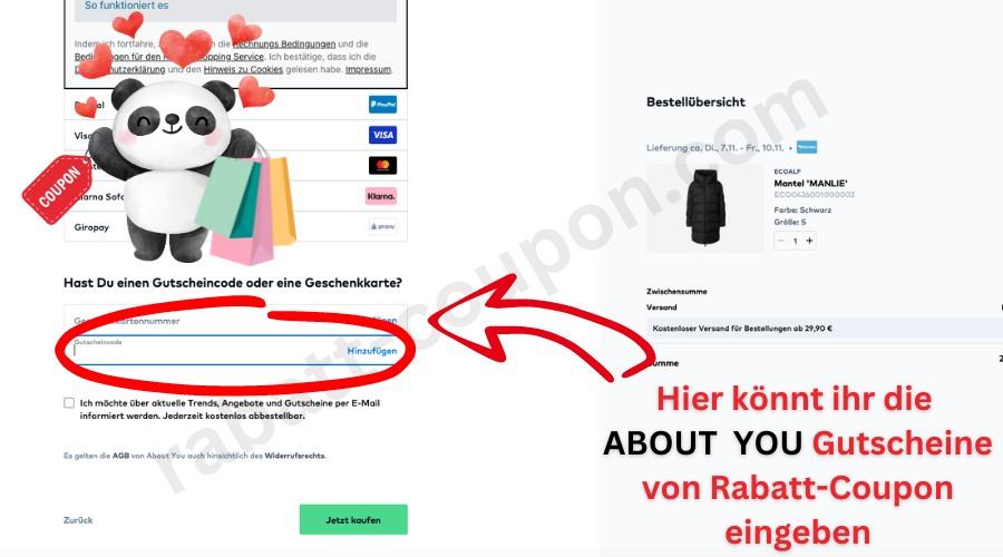 - 🐼 Geschenkkarte: Falls ihr eine Geschenkkarte von ABOUT YOU habt, könnt ihr diese während des Bezahlvorgangs einlösen.