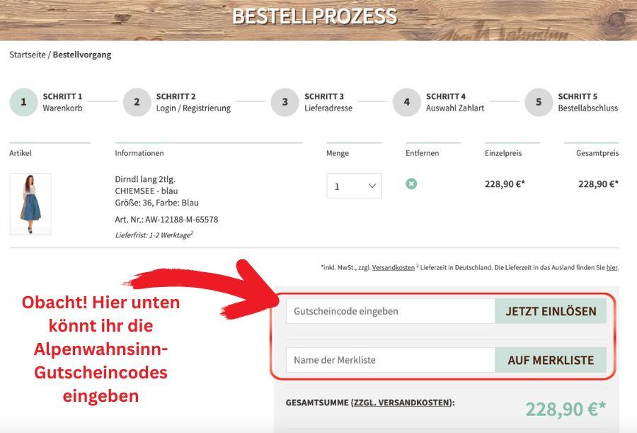 Einfach den Alpenwahnsinn Gutscheincode eintragen.