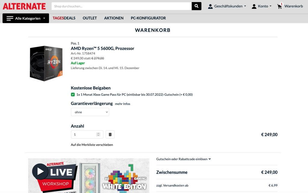 Einfach unserem Link folgen, den Gutscheincode eingeben und mit ALTERNATE kräftig profitieren.