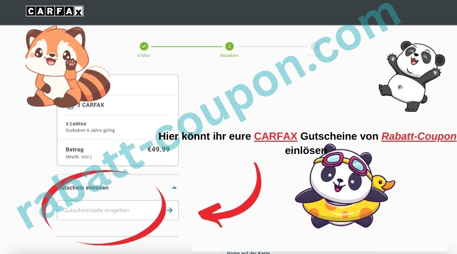 - Wenn ihr zur Kasse geht, werdet ihr nach einem Promo-Code oder Gutschein gefragt. Gebt den Carfax Gutscheincode ein, den ihr erhalten habt, und bestätigt die Eingabe.