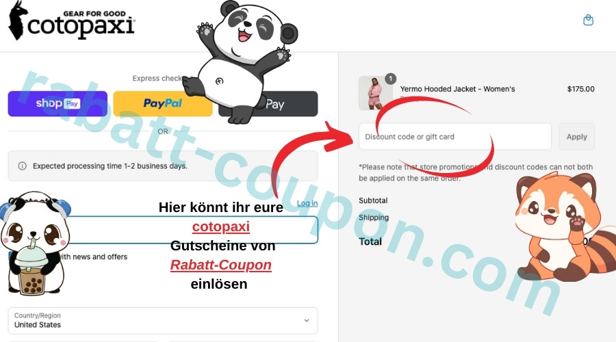 - Einlösen: Beim Checkout den Cotopaxi Gutscheincode verwenden