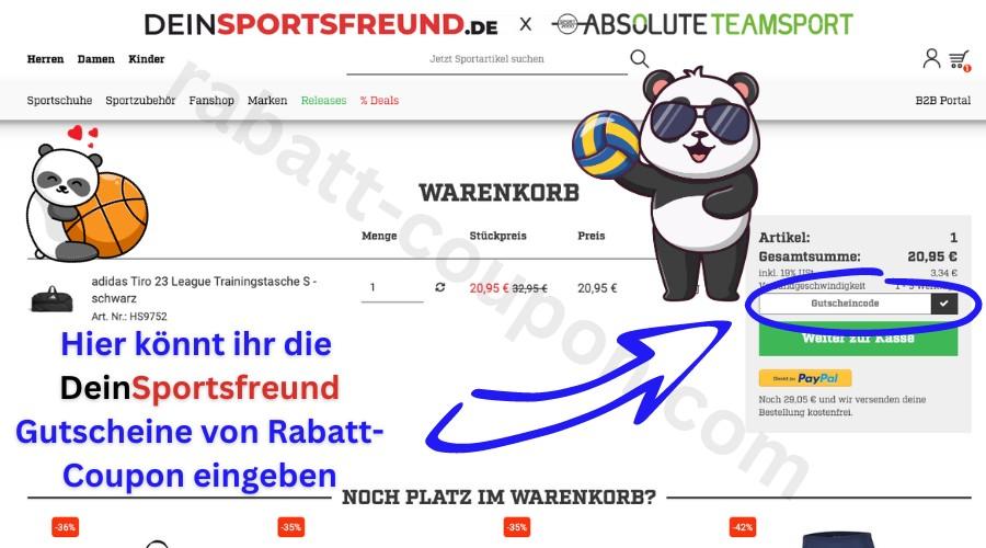Einfach den DeinSportsfreund.de Gutscheincode im Bestellprozess eingeben und sparen.
