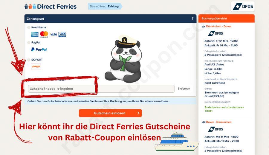 Einfach dem Link folgen, den Direct Ferries Gutschein eintragen und sparen.