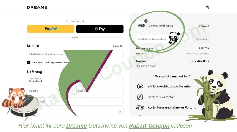 - 🔑 Dreame Gutschein eingeben und auf „Anwenden“ klicken