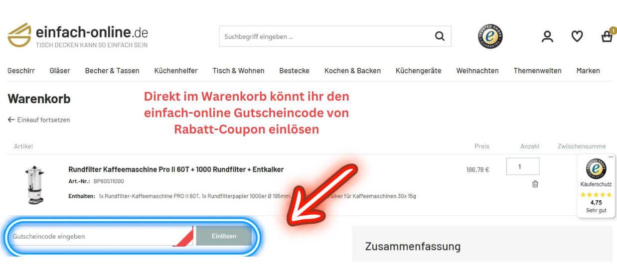 Anleitung zum Einlösen von einem Einfach-online Gutschein: