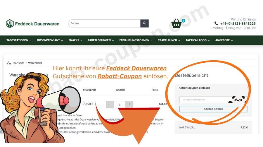 Solltet ihr einen Feddeck Dauerwaren Gutschein besitzen, könnt ihr diesen während des Bestellvorgangs im Warenkorb oder an der Kasse im entsprechenden Feld eingeben. Der Rabatt wird dann automatisch vom Gesamtbetrag abgezogen.