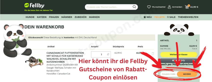 🐶🐱 🔗 Code: Gutscheincode im Warenkorb eingeben.