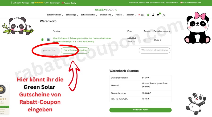 Green Solar Rabatt-Coupon – 84 € Rabatt auf Reinigungs-Set sichern 🐼🫧