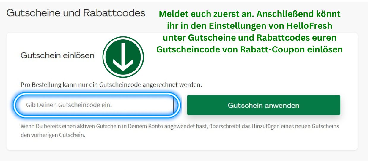 - Ist Ihr Gutscheincode abgelaufen? Wenn dies der Fall ist, teilen Sie uns dies bitte mit, indem Sie beim entsprechenden HelloFresh-Angebot auf „Ungültig“ klicken. 6. Der Gutschein gilt nur für Neukunden Sind Sie bereits Kunde?