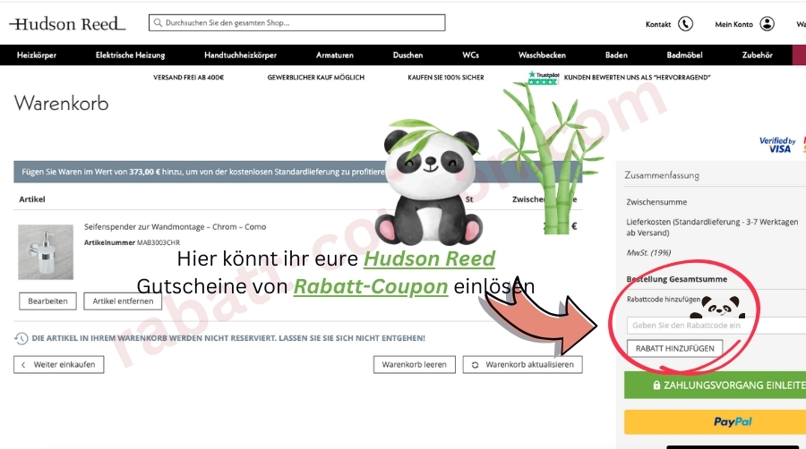 Im Warenkorb könnt ihr den Hudson Reed-Gutscheincode von Rabatt-Coupon einlösen. 💡 Tipp: Noch mehr exklusive Gutscheine und Aktionen findet ihr bei Rabatt-Coupon! 🐼