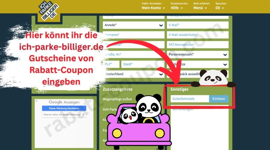 Anleitung zum Einlösen von einem ich parke billiger Gutschein: