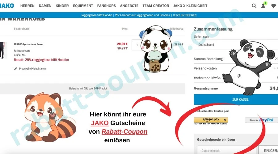 Einfach unserem Link folgen, den JAKO-Gutscheincode an der Kasse einlösen und kräftig sparen.