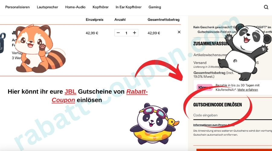Verwendet einfach den JBL Gutscheincode an der Kasse und spart, was das Zeug hält. 🛒