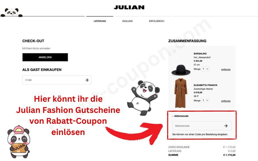 - Gebt den Julian Fashion Coupon im entsprechenden Feld ein