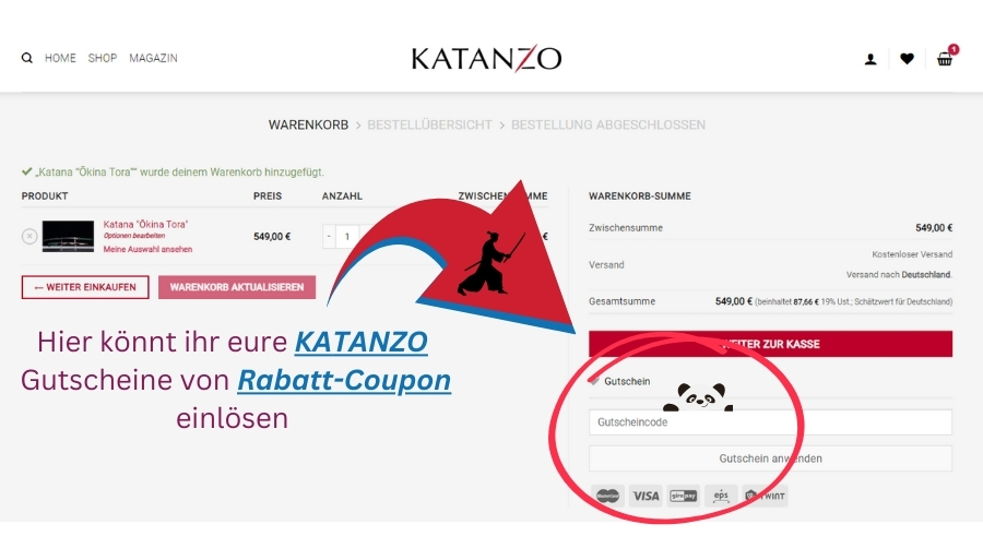 Mit dem Katanzo Gutschein erhaltet ihr 8 % Rabatt auf eure gesamte Bestellung, ganz ohne Mindestbestellwert. ⚔️