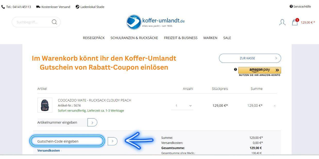 Anleitung zum Einlösen von einem Koffer-Umlandt Gutschein: