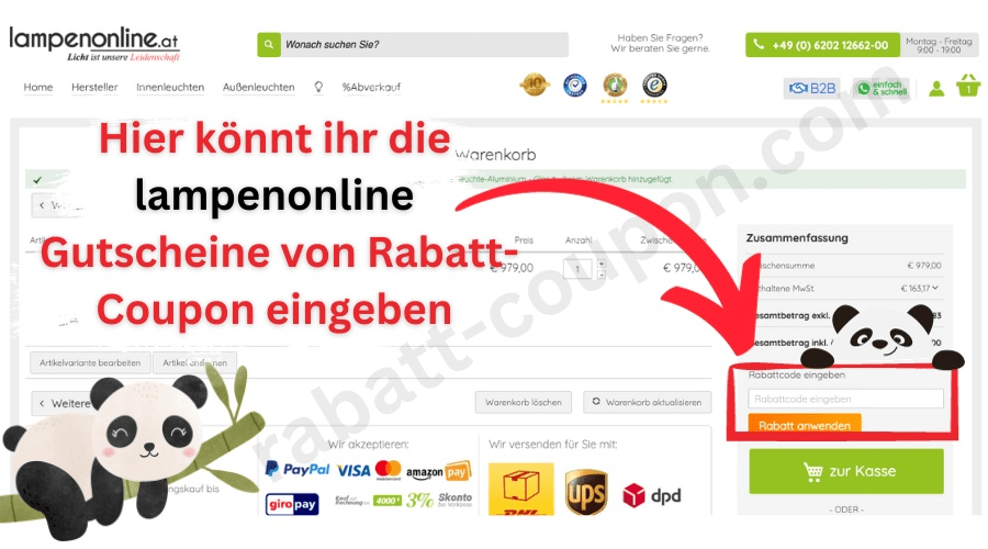 Jetzt kommt das Sahnehäubchen: Ihr könnt bei eurem Einkauf bei Lampenonline bares Geld sparen, indem ihr einen Lampenonline Gutschein verwendet. Doch wie funktioniert das? 🐼 Ganz einfach!