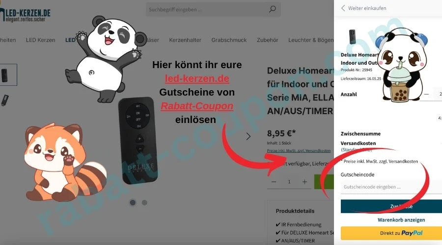Nur noch den LED-Kerzen Gutscheincode an der Kasse eingeben.
