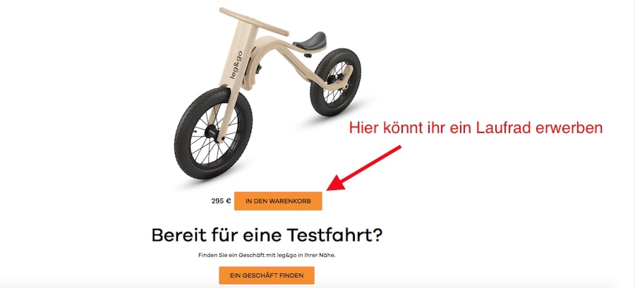 Mit dem leg&go Gutschein erhaltet ihr 20% Rabatt auf Laufräder.