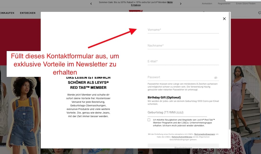 Levi's Newsletter – Immer up to date: Meldet euch für den Levi's Newsletter an und erhalte ein 10 % Rabatt-Coupon, exklusive Angebote und News zu aktuellen Aktionen.
