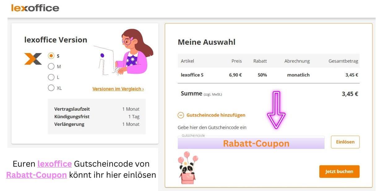 Einfach den Lexoffice Gutscheincode im Bestellprozess eingeben und sparen.