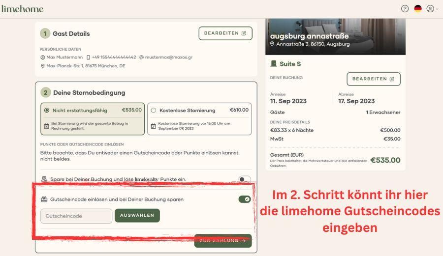 Nur noch den Limehome Gutscheincode an der Kasse eingeben.