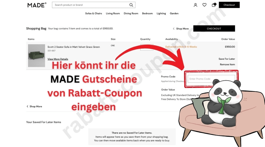 Anleitung zum Einlösen von einem MADE.COM Gutschein🐼✨