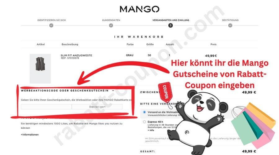 Wenn der Rabattcode nicht funktioniert, überprüfe die Einlösebedingungen und ob der Code noch gültig ist. Manchmal sind bestimmte Artikel oder Aktionen von der Gutscheinverwendung ausgeschlossen.Zahlungsmöglichkeiten bei Mango 🐼