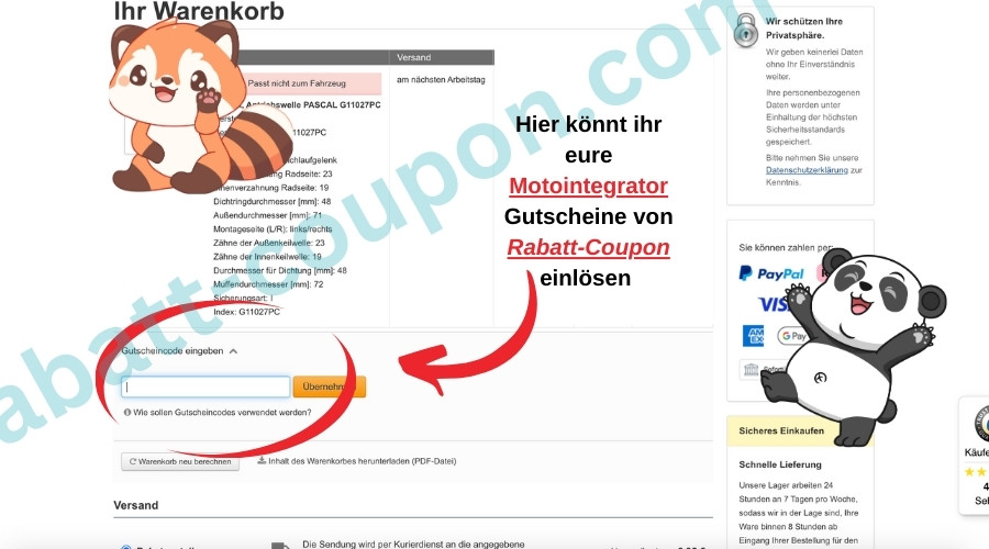 Um einen Motointegrator Gutschein einzulösen, müsst ihr nur wenige einfache Schritte befolgen. Zuerst wählt ihr die gewünschten Artikel aus und legt sie in euren Warenkorb. Beim Checkout gibt es ein Feld, in das ihr den Gutscheincode eingeben könnt. Nachdem der Code bestätigt wurde, wird der Rabatt automatisch von der Gesamtsumme abgezogen. Dieser Vorgang macht es einfach, bei jedem Einkauf zu sparen. Vergesst nicht, dass ihr zum Sparen einfach unserem Link folgen könnt. 🛒📉 Darauf könnt ihr mit einem Motointegrator Gutschein sparen