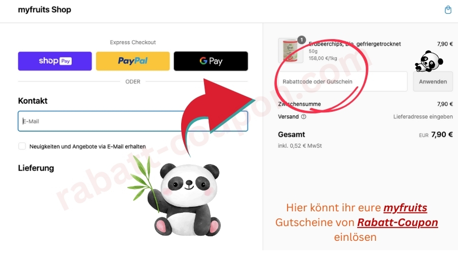 Bei myfruits spart ihr bis zum 30. April 2025 15 % auf das gesamte Sortiment – ganz ohne Mindestbestellwert. Einfach den passenden Rabatt-Coupon 🐼 im Warenkorb eingeben und direkt profitieren.