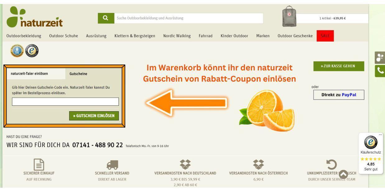 Anleitung zum Einlösen von einem naturzeit Gutschein