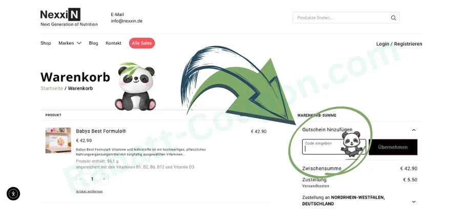 - Im Bestellprozess auf nexxin.de ins Gutscheinfeld eingeben