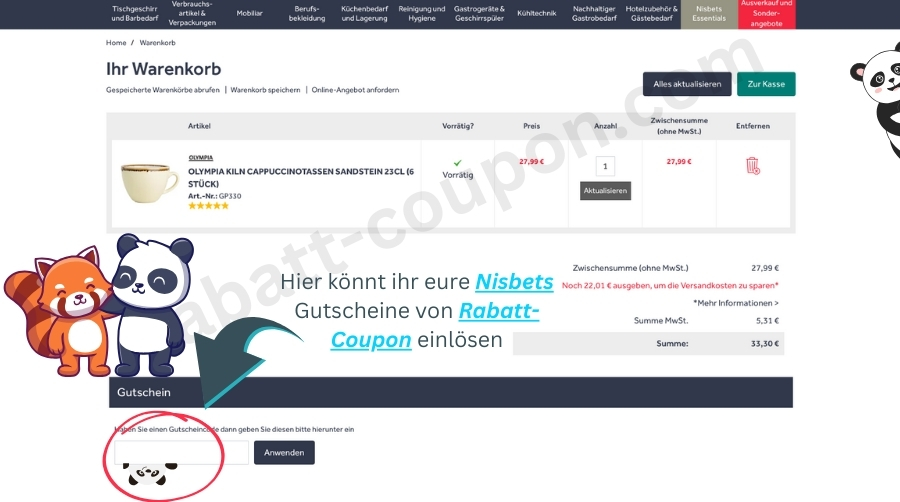 Anleitung zum Einlösen von einem nisbets.de Gutschein: