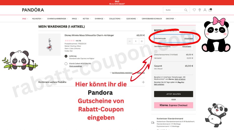 Einfach unserem Link folgen und Pandora Gutscheincode im Warenkorb eingeben und kräftig profitieren.