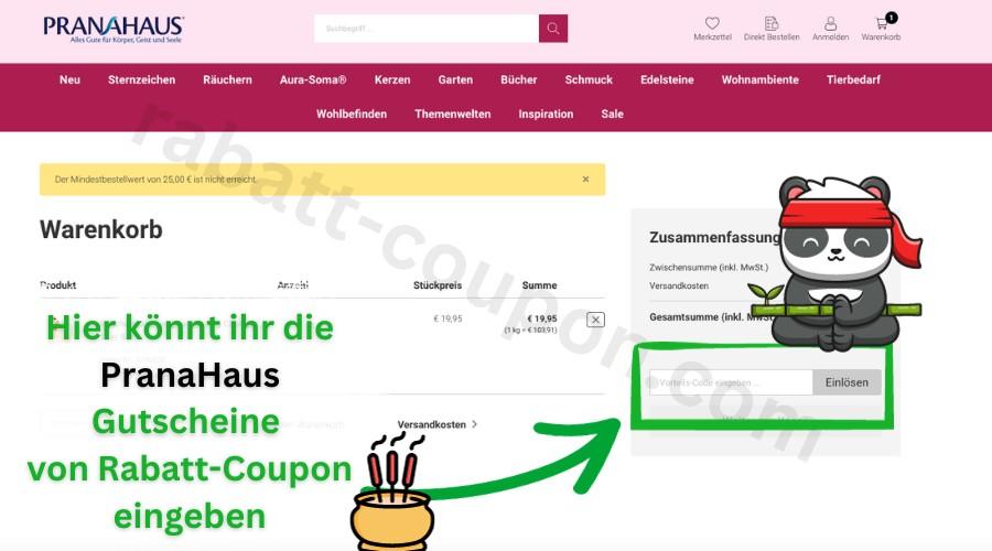 - Gebt euren PranaHaus Gutscheincode ein und klickt auf "Einlösen".