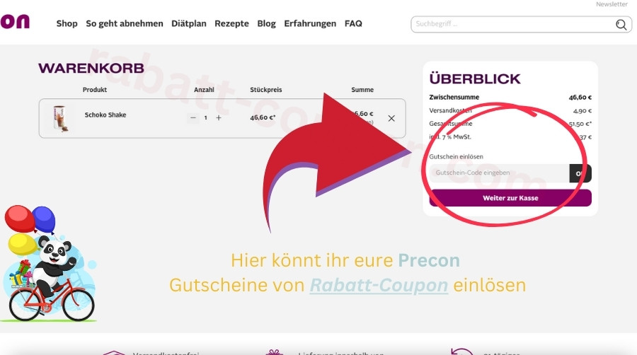 - Einkauf bei Precon: Geht auf die Precon-Website und füllt euren Warenkorb mit den gewünschten Produkten.