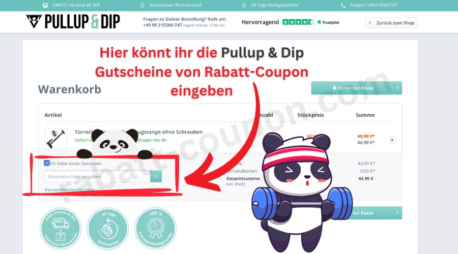 Einfach unserem Link folgen, den Pullup & Dip-Gutscheincode an der Kasse einlösen und kräftig sparen.