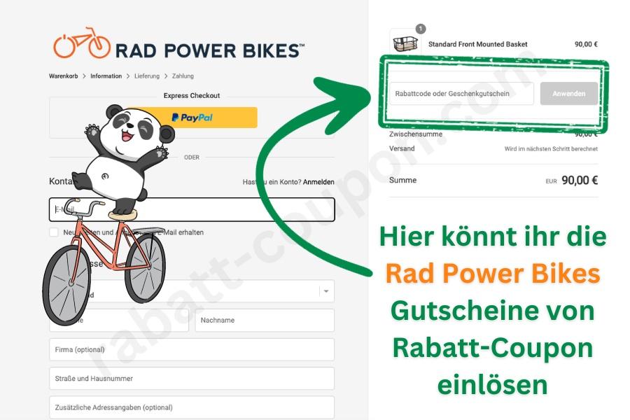 🐼 Ihr habt einen Rad Power Bikes Gutschein und möchtet ihn nutzen, um bei eurem Traumfahrrad zu sparen? Das ist kinderleicht! Wählt euer Wunschrad aus, fügt es zum Warenkorb hinzu und gebt während des Bestellvorgangs euren Gutscheincode ein. Schon könnt ihr euer Elektrofahrrad zu einem unschlagbaren Preis ergattern.