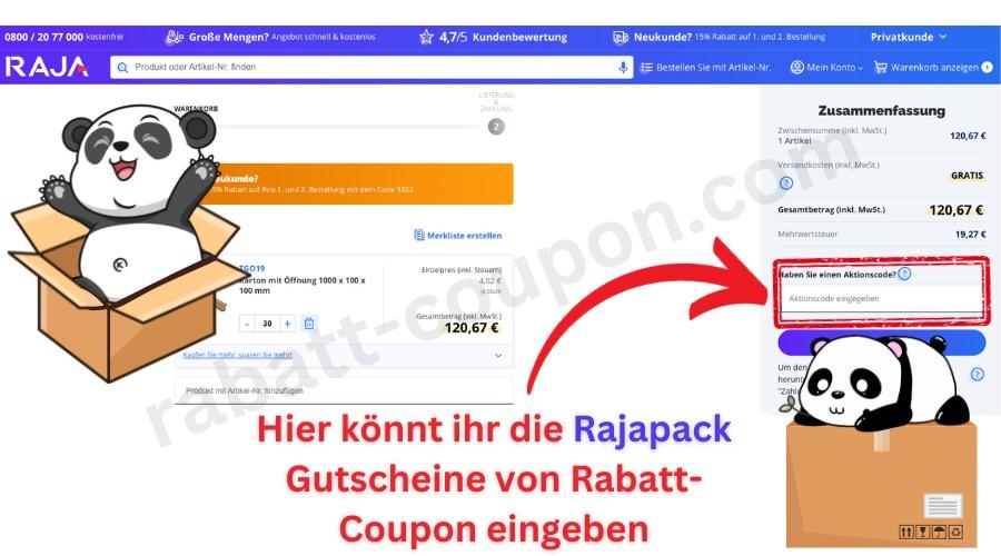 Einfach den Rajapack Gutscheincode im Bestellprozess eingeben und sparen.