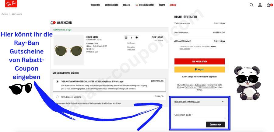 Anleitung zum Einlösen von einem Ray Ban Gutschein