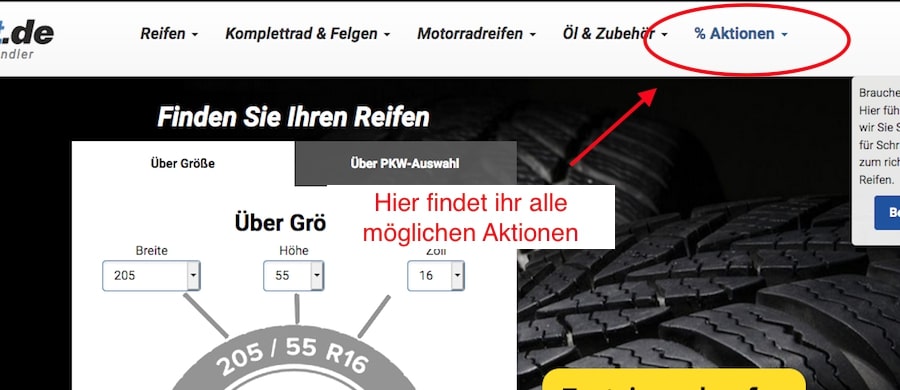 Holt Euch die satten Rabatte von ReifenDirekt, mit einer Ersparnis von bis zu 50 %. Zu finden unter dem Reiter Aktionen. Wer kann hier widerstehen! 💕