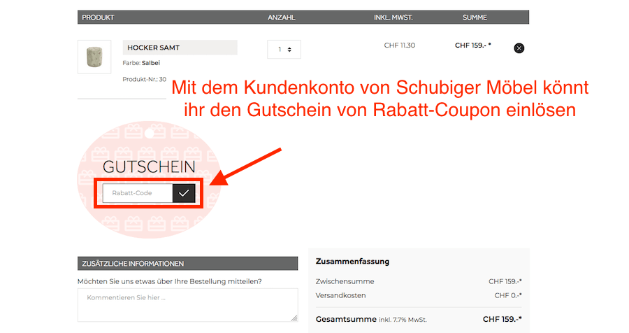 So könnt ihr mit Rabatt-Coupon bei Schubiger Möbel Schweiz sparen: