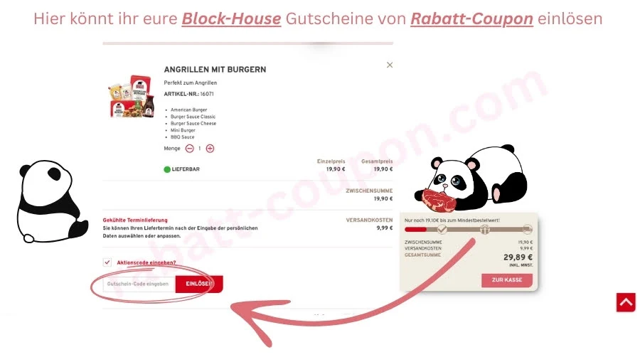 Wenn ihr einen Rabatt-Coupon für Block-House habt, ist die Einlösung ganz einfach: