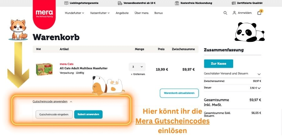 🐼 Gebt den MERA Petfood Gutscheincode im entsprechenden Feld ein.
