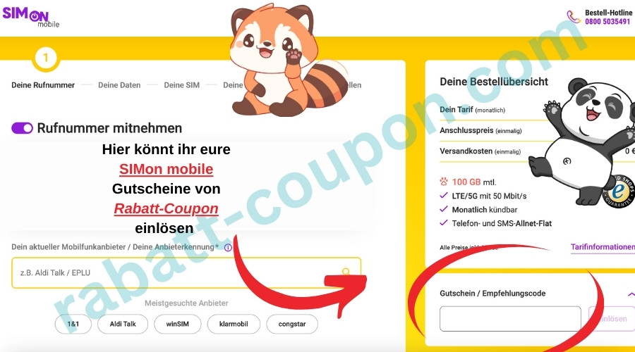 - Gebt den SIMon mobile Gutscheincode dort ein und bestätigt.