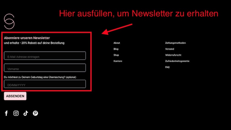 - Setzt das Häkchen im Feld darunter und klickt auf senden. Schon seid ihr beim Newsletter angemeldet und erhaltet alle Angebote von Sophie Rosenburg.