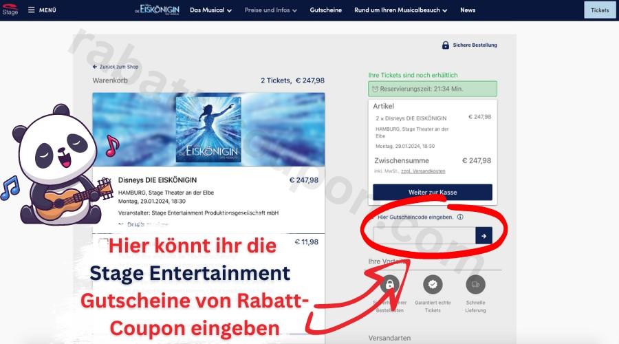 Dafür unserem Link folgen und schon könnt ihr euch mit dem Stage Entertainment Gutscheincode an der Kasse eingeben.